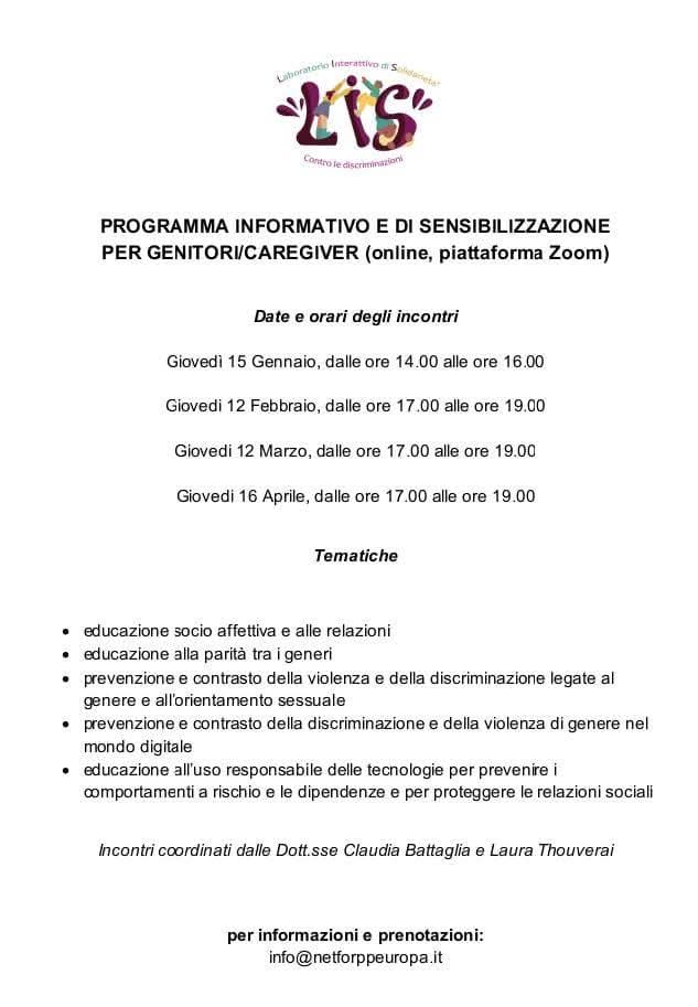 Eccoci qui con il programma degli incontri previsti con i genitori/caregiver degli alunni della Scuola media integrata per sordi e udenti “Severino Fabriani” e con il personale scolastico dello stesso Istituto. Il progetto “LIS: Laboratorio Interattivo di Solidarietà contro le discriminazioni” è anche questo: informare e sensibilizzare gli adulti su tematiche così importanti come l’affettività, l’uguaglianza, le potenzialità dei rapporti umani…