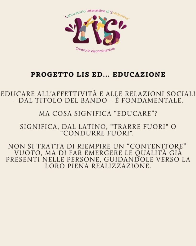 Oggi, alle ore 14, si terrà la prima sessione del percorso di informazione e sensibilizzazione sulle tematiche del progetto “LIS: Laboratorio Interattivo di Solidarietà contro le discriminazioni”. Si tratta di un percorso dedicato ai genitori degli studenti dell’Istituto Severino Fabriani e al personale scolastico della stessa scuola. Discuteremo con loro delle tematiche di progetto e oggi, in particolare, la dott.ssa Claudia Battaglia tratterà un argomento importantissimo, previsto dal bando: la prevenzione e il contrasto della discriminazione/violenza di genere nel mondo digitale.