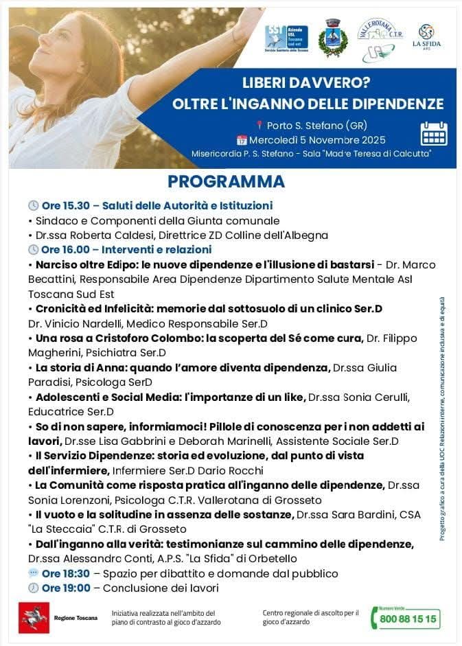 Le dipendenze – da sostanze, gioco, video game, rapporti tossici – sono un tema cruciale di cui si parla troppo poco. Vi segnaliamo questo convegno toscano. Tra i relatori, il nostro socio Filippo Magherini. Notate i titoli allettanti dei singoli interventi!