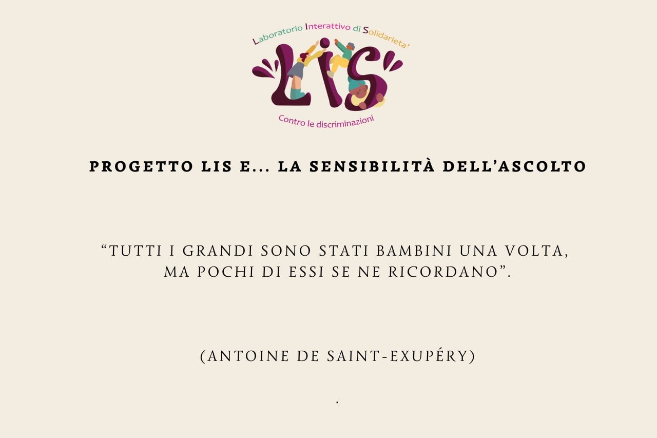 Tra gli obiettivi trasversali del progetto “LIS: Laboratorio Interattivo di Solidarietà contro le discriminazioni” c’è quello di sensibilizzare gli adulti alla profonda sensibilità dei ragazzi, spesso poco riconosciuta. I giovani sono una risorsa preziosa, pieni di vitalità, idee ed energie. Rappresentano una forza autentica per costruire una società più inclusiva e consapevole. Ascoltarli, comprenderli e valorizzarli è il primo passo per educare al rispetto e alla solidarietà.
